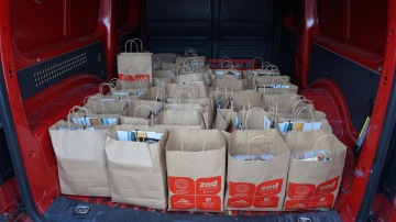 z Fakultní nemocnice na Bulovce (18.2.2021). Věnovali jsme jim tašky s našimi prémiovými výrobky - 50kg krůtích prsou, krůtí klobásy a krůtí párečky.
